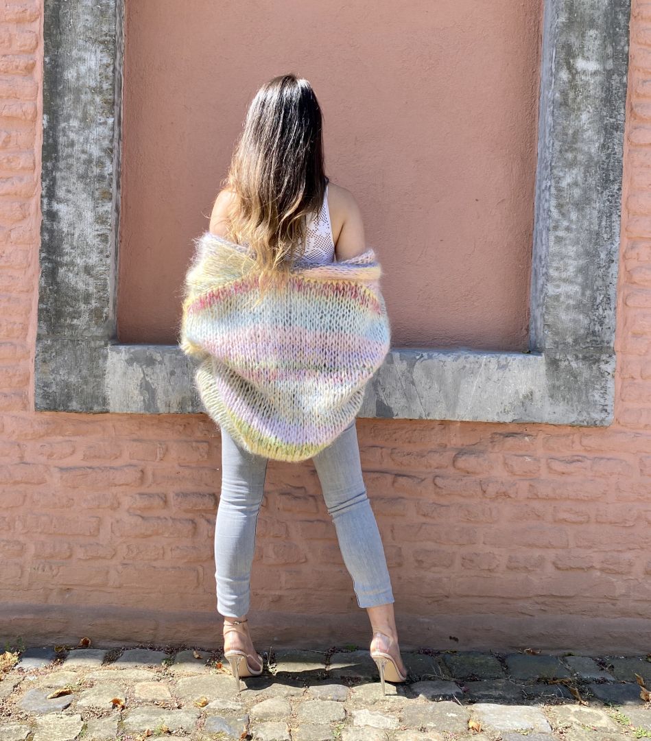 Mit viel Hingabe werden diese Naturfasern von uns nach Gefühl kombiniert. Das verwendete Garn sorgt für federleichte und luftige Resultate mit einer einzigartigen Farbgebung. Jedes einzelne unserer Stücke ist ein Unikat und ein absoluter Blickfang! Ein Alleskönner - egal ob nur leger vor dem Kamin, zum warmhalten beim Spaziergang, als Begleiter in den Biergarten oder auch über das Abendkleid, nachdem die Sonne am Himmel langsam unter geht.